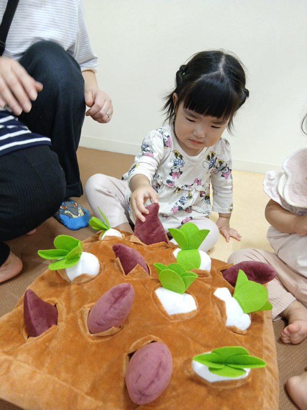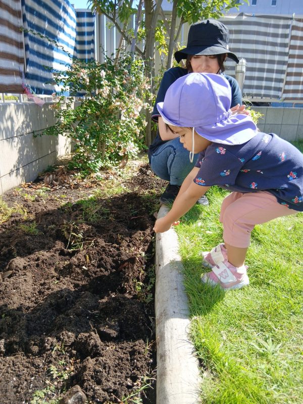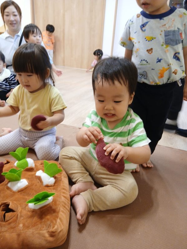 昨日と今日、乳児クラスでお芋堀り体験をしました。