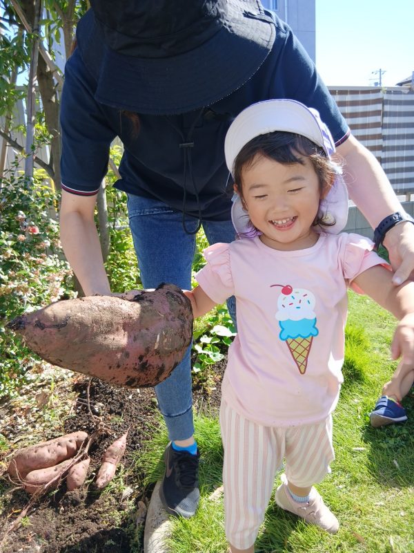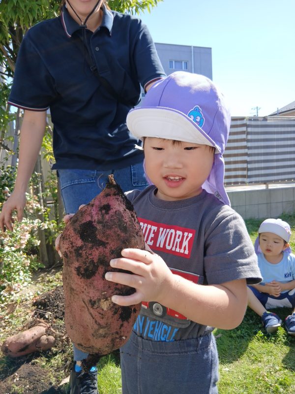 実さんは園庭の花壇で行いました。大きなサツマイモの大喜び🎵