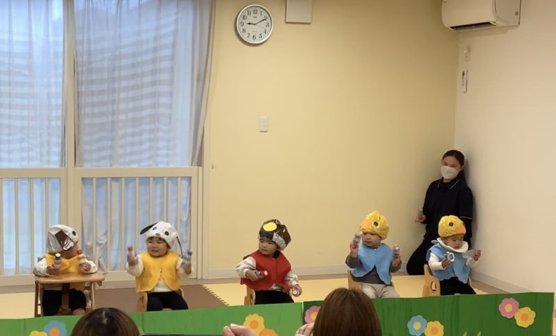 乳児クラスは初めての発表会に泣いてしまう姿も見られましたが、可愛らしい姿を披露してくれました🎶